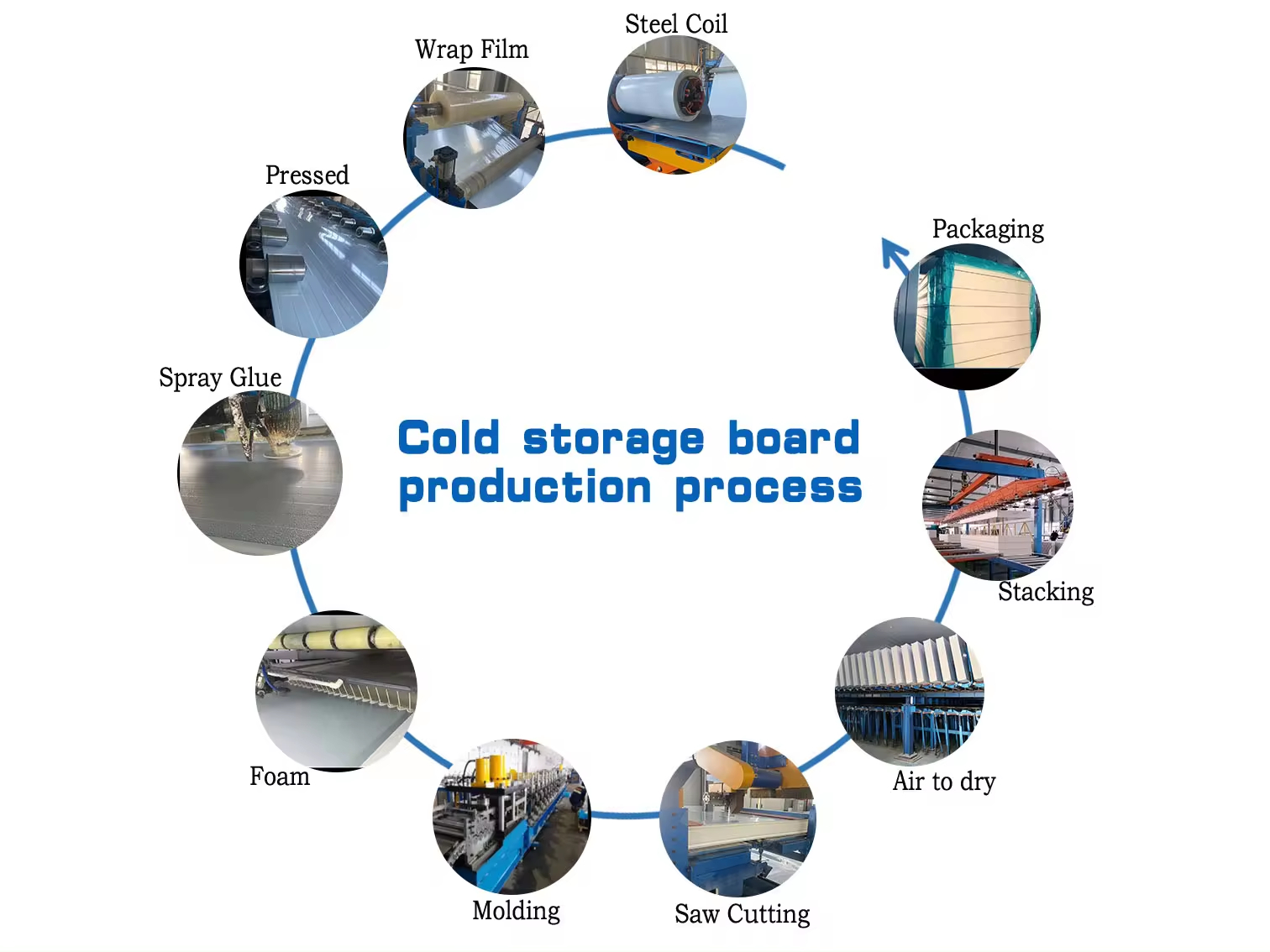 The PIR cold room panel has the advantages of flame retardancy , thermal insulation, compression resistance, energy saving and environmental protection. Taking lightweight polyurethane as the inner material of the cold room panel, the advantage of polyurethane is that the thermal insulation performance is very good. The exterior of the PIR cold room panel is made of color steel plate or stainless steel plate components .